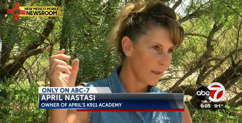 50-years-old APRIL TINA NASTASI (pictured below) owns April’s K911 Academy on 2735 Desert Wind Way in Las Cruces. According to the academy website, NASTASI is an expert canine behavior specialist.