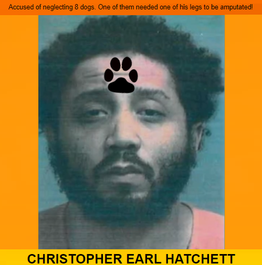 CHRISTOPHER EARL HATCHETT in custody after being sought for neglecting eight innocent dogs
