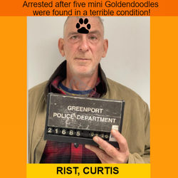 Police responded to the residence of 63-year-old CURTIS RIST (pictured) and found five mini Goldendoodles, ranging in age from four to ten years old, all in deplorable conditions.