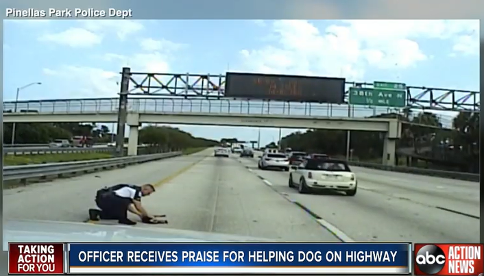 On Thursday, September 19, Officer Joseph Puglia with the Pinellas Park Police Department was on his way to work when he saw a dog who had been hit by a car while trying to cross I-275 near 38th Ave N.