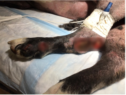 · Photos showed what appeared to be another hind limb with a hole the size of a quarter in it and other injuries.