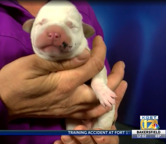 Ms. Morgan Sokolow with Pet Matchmaker said: "He's very little. He's got his eyes closed still. We think that mom was able to get the other babies out and took off with them but was unable to reach this one because he was underneath the fire.”