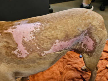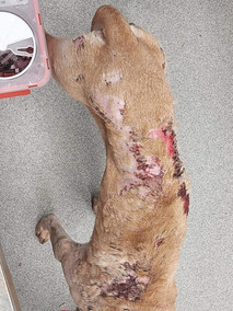 Veterinarians identified what appeared to be 2nd degree burns in various stages of healing and explained that the burns were consistent with “thermal burns.”