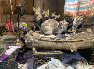 Deputies discovered 59 cats who were starved and eating one another, and many were trapped in cages.