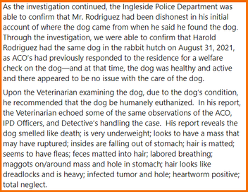 Investigators concluded that RODRIGUEZ failed to provide the necessary medical care for his dog.