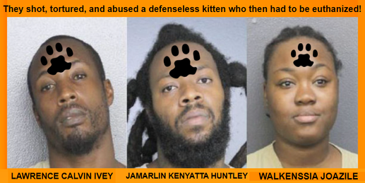 LAWRENCE CALVIN IVEY, JAMARLIN KENYATTA HUNTLEY, and WALKENSSIA JOAZILE tortured and shot a kitten