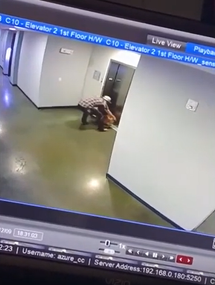 A surveillance camera captured Johnny immediately rushing to the pooch.