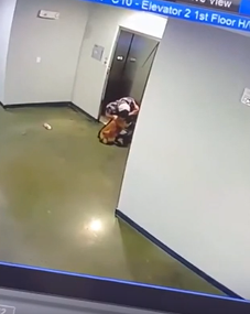 When he got off, he saw a woman and her dog about to get in the elevator.