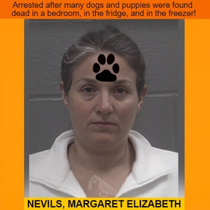 MARGARET ELIZABETH NEVILS arrested - Dogs and puppies found dead in a bedroom, fridge, and freezer