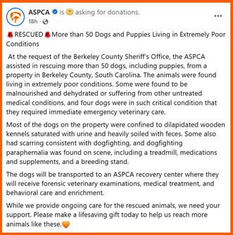 Voice For Us Disclaimer: This story is sourced from information released by the Berkeley County Sheriff and the ASPCA. Please note that details may be removed or new information added should updates become available.