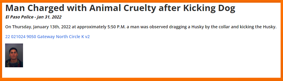 Police received a report about a male who was seen dragging a dog by the collar and then kicking the furbaby.