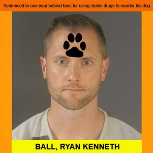 RYAN KENNETH BALL, licensed pharmacist, sentenced to one year behind bars for using stolen drugs to murder his dog