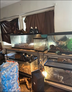 Inside the property, officials found several cages and glass aquariums containing snakes and rodents as well as cats and rats running freely.