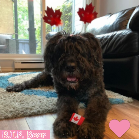 The furbaby, an 11-year-old female Bouvier named Bear, was already blind and partially deaf.
