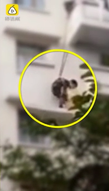 The woman, Mrs. Tang, dangled her 7-year-old grandchild named Hao Hao from a 50-foot-high balcony of her 5th floor apartment to rescue her cat.