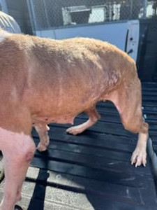On April 3, 2025, a female dog who was extremely emaciated and severely abused was found in the 4500 block of Northwest 36th Street in Lauderdale Lakes. The concerned citizen who found the dog called for help and an officer with Broward County Animal Care and Adoption Division picked her up and took her to Big Dog Ranch Rescue.