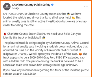 After a gut-wrenching video showing a helpless dog being dragged behind a truck for more than half a mile was shared with the authorities, Charlotte County Public Safety reached out to the public, specifically to the county’s “Super Sleuths” for information.