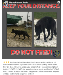 For days the Warwick Animal Shelter posted on their Facebook page appeals addressed to the public urging the community to not feed the “coyotes” and to keep the distance.