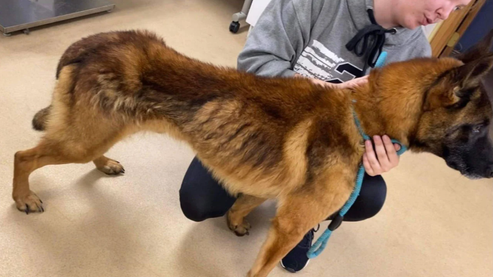 The dogs were found living in their fecal matter, with matted coats, dehydrated, and extremely skinny.