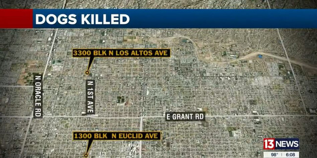That same day, police were alerted to the death of another dog, named Ellie, at a property in the 3300 block of North Los Altos. Investigators believed the two incidents were related and an investigation identified PANOS as a person of interest in the case.