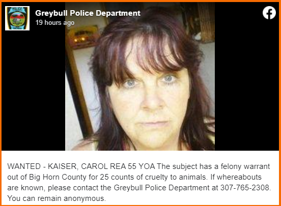 According to Cowboy State Daily, on December 20, 2022, the Fremont County Attorney’s Office increased its case against WRIGHT from two animal cruelty charges to the following ten:
